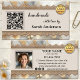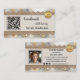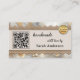 Business card featuring a boho chic design with metallic gold lace on canvas with a glam background. Several templates are added: a QR code, logo and social media. You can customize those and replace the social media icons with your custom icons. On the back is also space for your own photo. A modern professional business card for anyone creating handmade artisan products or gifts.