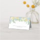 A beautiful arrangement of ivory white roses and fluffy blue hydrangeas creates a lush top border on the font of this place card. There is a space for the guests name and the table number below. A beautiful blue and white floral wreath on the back, with the same flowers as the top border, frames the bridal couple's names and wedding date. Very elegant, but easy to customize. Perfect for the DIY bride who wants to add a special touch to their wedding table decor. This item is part of the Rose and Hydrangea collection. You'll find many coordinating items to personalize your day.