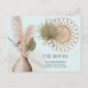 Boho chic moving announcement postcard with rustic bohemian style home accents in watercolor. The design features a rattan wall hanging with dried palm leaf, large vase of pampas grass, dried grass, sun spear and seed heads. "I've Moved" as well as your name, address and personalized message on the back are all easy to edit. Please browse my Boho Chic Home collection for alternative styles.