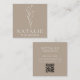 Boho Chic Minimalist Greige Flower QR Code Square Business Card