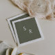 These boho chic olive green monogrammed napkins are perfect for a minimalist wedding. The woodsy dark green earth tone modern bohemian design features simple rustic calligraphy with a unique yet classic style.