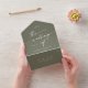 This boho chic olive green wedding QR code and mail in all in one invitation is perfect for a minimalist wedding. The woodsy dark green earth tone modern bohemian design features simple rustic calligraphy with a unique yet classic style.