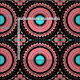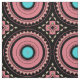 Infuse your next DIY project with a vibrant touch of bohemian flair. This intricate design features a repeating geometric mosaic pattern characterized by stylized sunburst medallions and tribal-inspired motifs. The color palette blends soft salmon pink and bright turquoise teal against a contrasting dark charcoal black background, creating a retro yet modern look. This print is perfect for creating unique home decor accents like throw pillows, upholstering statement chairs, crafting trendy tote bags, or sewing one-of-a-kind quilting squares.