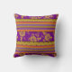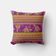 Trendy throw pillow with boho chic inspired purple & mustard yellow pattern.