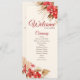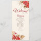 Elegant chic Classic Wedding Program Cards decorated with red Orchids and boho-chic Botanicals. All text is fully customizable for your big day.