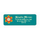 Boho Chic retro floral, return address label. Background color shown in teal with coordinating beige text in retro font styles. Floral accent in shades of orange and beige.