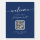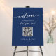 This boho chic royal blue QR code seating chart foam board sign is perfect for a minimalist wedding. The bold dark blue modern bohemian design features simple rustic calligraphy with a unique yet classic style.