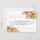 Embrace the warmth of the country sun with our boho-rustic orange bridal thank you, adorned with beautiful sunflowers, green leaves, and brown red branches. Perfect for the free-spirited couple. with a brushed script typography on a simple editable white background.