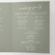 Personalize your wedding program with your initials, names, wedding date and location, your favorite quote or lyric, order of service, wedding party, in loving memory memorial message, unplugged ceremony message, a thank you note and a photo.