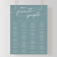 This boho chic seafoam teal printable seating chart poster sign is perfect for a minimalist wedding. The colorful blue green modern bohemian design features simple rustic calligraphy with a unique yet classic style reminiscent of the beach, ocean and summer seaside.