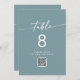 These boho chic seafoam teal QR code table numbers are perfect for a minimalist wedding. The colorful blue green modern bohemian design features simple rustic calligraphy with a unique yet classic style reminiscent of the beach, ocean and summer seaside.