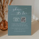 This boho chic seafoam teal share the love QR code sign is perfect for a minimalist wedding. The colorful blue green modern bohemian design features simple rustic calligraphy with a unique yet classic style reminiscent of the beach, ocean and summer seaside.