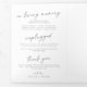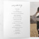 Personalize your wedding program with your initials, names, wedding date and location, your favorite quote or lyric, order of service, wedding party, in loving memory memorial message, unplugged ceremony message, a thank you note and a photo.