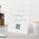 Boho Chic Slate Blue QR Code Wedding Program Pedestal Sign