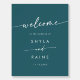This boho chic teal blue wedding welcome sign is perfect for a minimalist wedding. The bold dark turquoise jewel tone modern bohemian design features simple rustic calligraphy with a unique yet classic style.
