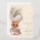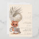 Boho Chic We Can Bearly Wait Baby Shower. With luxury real foil in either gold, rose gold or silver for your name and the set script Bearly Wait A cute bear holding a clock with boho feathers and grasses and antique white background. Easily personalise the rest of the text to your requirements.