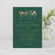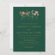Romantic dark emerald green and gold wedding invitation with hand-painted bohemian florals