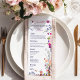 Celebrate in style with this beautiful boho wildflowers graduation menu, featuring hand-painted watercolor florals in soft pink, purple, and peach tones. Perfect for adding an elegant, personalized touch to your graduation celebration, bridal shower, or summer party. This tall menu card is ideal for placing at each table setting, combining charm with a fresh garden-inspired vibe.