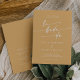 Plain white envelopes are included with paper invitations and will come to fit the invitation size you select. If you don’t need the envelopes, you may choose to not receive them by selecting the dropdown below "Envelopes" and choosing "None." If you’d like to have a design on your envelopes, you can browse all of these available envelopes to find the design that complements your Boho Chic Yellow Marigold Qr Code Spanish Wedding Invitation.