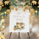 Christmas winter themed bridal shower tea party welcome sign board, watercolor cup of tea with snowflakes poinsettia and cookies pine branches modern casual font