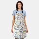 This apron has a Boho design of overlapping circles on retro shades of green, brown, blue and gray.
