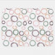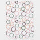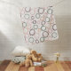 This baby blanket has a Boho design of overlapping circles on retro pink, purple, moss green, and caramel orange.
