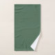 This towel set has a bath towel with a Boho design of overlapping circles on retro pink, purple, moss green, and caramel orange, a purple washcloth, and a green hand towel.