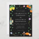 Celebrate your love in style with this boho chic watercolor wedding invitation, featuring vibrant hand-painted bohemian botanicals and a refreshing European citrus and wine theme set against an elegant black background.