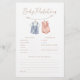 An adorable baby advice & predictions card featuring a boho hand-painted watercolor illustration of blue and pink clothes on a clothesline. There is space for the guests to write their birth predictions, resemblance predictions, and advice for the new parents. This activity card was made to match our Boho Baby Clothes Gender Reveal collection. View the collection linked on this page to see the full set. Feel free to message me with any questions, I'll be happy to help!