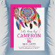 Boho Colorful Pink Dream Catch Birthday Watercolor Invitation