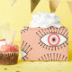 Beautiful modern Boho evil eye patterned gift wrap with pretty coral pink and white eyes
