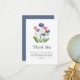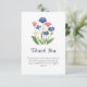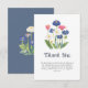 Show your appreciation with this charming Baby in Bloom thank you card! The front blooms with a delicate watercolor wildflower bouquet — dusty blue cornflowers, white daisies, pink accents, and fresh greenery — paired with elegant navy "Thank You." Inside: "For showing us with love and sharing in the celebration of our little bundle of joy! We are grateful for all of the gifts, wishes, kind words, love, and support! With love." Includes matching dusty blue envelope. Ideal for boho meadow, gender-neutral, spring garden, or dusty blue showers. Coordinates with invitations, signs, guest book, napkins, plates. Premium fold-over cardstock, fully customizable!
