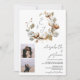 Boho Cotton Wreath Photo Rustic Initials Wedding Invitation