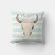 Beautiful personalized floral cow skull on a mint and white water color stripes pattern.