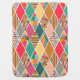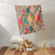This baby blanket has a Boho design of diamonds with different patterns alternating with solid diamonds in a Boho color palette.