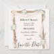 A unique Save the Date wedding announcement flat card. A watercolor boho rustic wedding arch adorned with draping elegant silk chiffon, ivory rose flowers, and foliage of greenery, palm and pampas with feathers and a vine covered arrow. The back of the card has a delicate floral bouquet in both corners. The cream color background can be changed by clicking the 'edit design' button. Click the 'personalize' button to add all of your details.