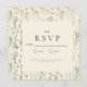 This elegant wedding invitation features a delicate cream background adorned with an exquisite array of wildflowers. Soft hues of blush pink, gentle lavender, and muted greens create a whimsical and romantic ambiance. The wildflowers are artistically arranged around the edges, framing the text with a natural and charming touch.