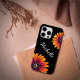 Boho Rustic personalized device case, with a colorful daisies design on a black background. With customizable script lettering, you can add your own name. Great for adding a stylish touch to your electronics accessories.
