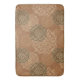 Gorgeous texture and design in a layered pattern print in colorful earth tones moss teal, tan, and brown. Elegant, thoughtful solids and borders artfully accent your monogram for your master or guest bathroom decor. Boho Dark Rust Mandalas Bath Mat Rug.