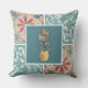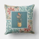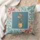 Here's a pretty throw pillow featuring decorative tiles in colors of khaki, teal, and rust with a center tile featuring flower in a vase. The same design is on both the front and back. You choose your size and fabric prior to placing it into you shopping cart.