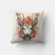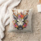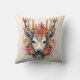 Boho Deer Colorful Flowers Throw Pillow