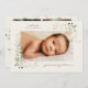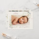 Sage green leaves, floral accents, and soft earth tones brings a natural and organic feel. While neutral champagne and white add a touch of elegance and sophistication. Background color can be personalized as well. Muted tones keep the look minimal and sweet. Add personalization and additional photos to the reverse side of the card. These professionally designed birth announcements are quickly customizable. It's the perfect opportunity to show off the newest addition to loved ones.