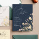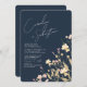 Boho Delicate Wildflowers Navy Wedding Invitation