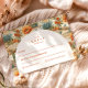 A refined western-inspired design featuring warm desert florals, cacti, and earthy botanicals arranged in a rich, painterly composition. The arched layout adds a timeless architectural feel, balancing the bold surrounding pattern with a clean, elegant center. Terracotta tones, soft neutrals, and muted greens create a grounded yet romantic palette—perfect for a modern desert or western celebration. Ideal for couples who want something unique, artistic, and effortlessly sophisticated.