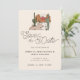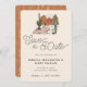 Custom boho desert wedding save the date invitation with a modern desert landscape illustration with a sunset and cactus, modern script font for Save the Date and fully customizable text template for the couple's names and the wedding information. Cute matching desert pattern on the back on a warm brown terracotta background.