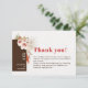 The front of this contemporary boho card is customizable with your personal thank you message in serif brown font, and your names and wedding date over a modern arch frame decorated with watercolor desert flowers and dried palm leaves.