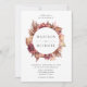 Elegant, unique floral wedding invitation featuring your names encircled by burgundy, purple, blush, and coral watercolor flowers and lush foliage in rich beige and brown earth tones. Personalize the floral invitations by adding details such as wedding date, time, venue, and reception information. The invite reverses to a light beige watercolor background.