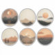 Add a touch of boho charm to your belongings with our round stickers, featuring desert horizon landscapes in warm tones. These stickers, steeped in personal iconography and surrealism, are perfect for those who appreciate nature-inspired pieces.