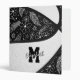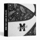 This cute basketball themed 3 ring binder features the realistic image of an abstractly oversized basketball that has recolored alternating black and white panels with delicate hand-drawn doodle flowers, feathers and paislies patterned on the basketball's black panels mirrored on the front & back cover - customize with the athlete's name and monogram, varsity letter, or jersey number - by katz_d_zynes