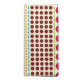 Cloth napkins featuring rows of polka dots in various sizes and boho inspired shades of blue, pink, green, orange, gold, and burgundy.